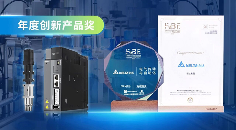 第四屆食品飲料工程年度創(chuàng)新產(chǎn)品獎(FBE Award 2025)日前揭曉,臺達高精度扭力旋蓋機解決方案以“微秒級掃描周期感知扭力變化而提升旋蓋精度”這一顛覆性技術(shù)創(chuàng)新脫穎而出,斬獲“年度創(chuàng)新產(chǎn)品獎”。這一殊榮不僅是對臺達深耕智能制造的認可,更標(biāo)志著其在推動包裝行業(yè)向“高精度、高效率、可追溯”升級的進程中,樹立了全新標(biāo)桿。 破局行業(yè)痛點:“精快巧”技術(shù)矩陣重構(gòu)旋蓋工藝 在食品飲料行業(yè),旋蓋工藝長期面臨扭矩偏差大、高速適配難、質(zhì)量控制滯后等挑戰(zhàn)。臺達旋蓋機方案以“高性能伺服系統(tǒng)+自研扭力傳感器+A
